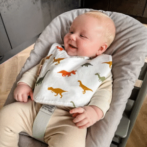 Praktische tip: maak er een leuk moment van! Laat je kindje zelf meehelpen door de slab te pakken of te “helpen” bij het aandoen – dat geeft een gevoel van routine en zelfstandigheid.