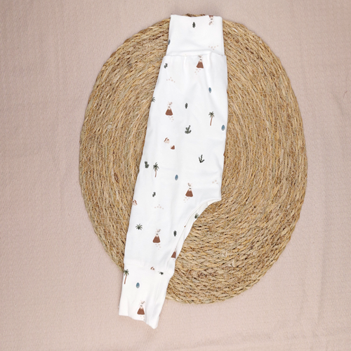 Ons model Harem heeft een hoge brede boord in de taille en fijne boordjes bij de enkels, gemaakt van dezelfde soepele stof. Dit zorgt ervoor dat het babybroekje heerlijk comfortabel zit en makkelijk meebeweegt met je kindje. Is het harembroekje in het begin nog een beetje aan de ruime kant? Geen probleem! De boordjes kun je eenvoudig omslaan zodat het broekje mooi aansluit. Dankzij de iets langere pasvorm groeit je kindje er bovendien lekker lang in mee. Elk broekje wordt met liefde en aandacht voor kwaliteit handgemaakt, zodat jouw kleintje een fijn eerste broekje draagt waar hij of zij elke dag plezier van heeft. Twijfel je over de juiste maat? Neem dan even een kijkje in onze blog: Welke kledingmaat heeft mijn baby nodig?