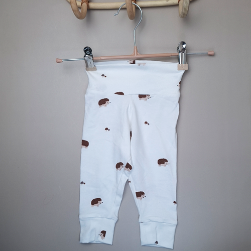 Handgemaakt in eigen atelier van zachte, duurzame stoffen. Dit babybroekje model legging millefleur egel in maat 62, zit heerlijk comfortabel, groeit mee en is makkelijk aan en uit te trekken. Perfect te combineren met een babyshirtje voor een lief setje.