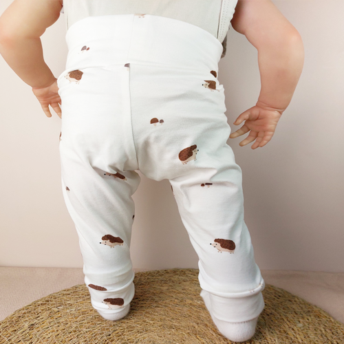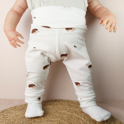 Dit handgemaakte babybroekje legging egel in maat 62 is perfect voor de allerkleinsten. Het comfortabele broekje heeft geen elastiek, maar zachte boordjes van dezelfde stof, waardoor het heerlijk zit en makkelijk aan en uit te trekken is. Ideaal voor de eerste weken en eenvoudig te combineren met onze andere babyshirtjes. Gemaakt met liefde voor jouw kleintje.