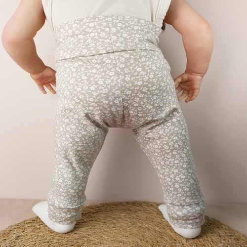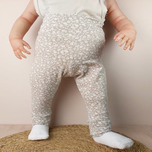 Dit handgemaakte babybroekje legging millefleur taupe in maat 56 is perfect voor de allerkleinsten. Het comfortabele broekje heeft geen elastiek, maar zachte boordjes van dezelfde stof, waardoor het heerlijk zit en makkelijk aan en uit te trekken is. Ideaal voor de eerste weken en eenvoudig te combineren met onze andere babyshirtjes. Gemaakt met liefde voor jouw kleintje.