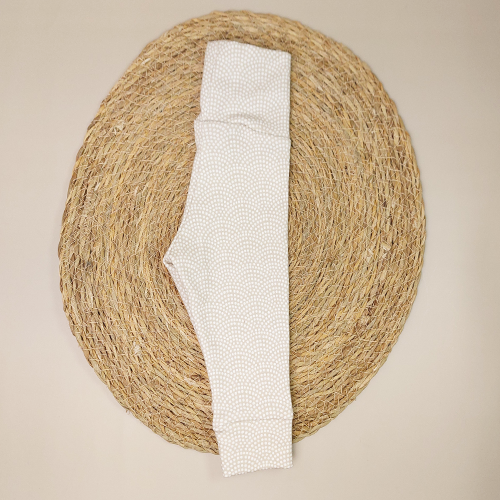Dit handgemaakte babybroekje legging regenboog beige in maat 50-86 is perfect voor de allerkleinsten. Het comfortabele broekje heeft geen elastiek, maar zachte boordjes van dezelfde stof, waardoor het heerlijk zit en makkelijk aan en uit te trekken is. Ideaal voor de eerste weken en eenvoudig te combineren met onze andere babyshirtjes. Gemaakt met liefde voor jouw kleintje.