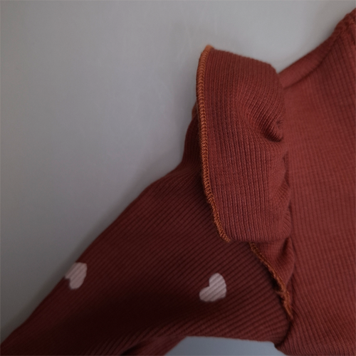 Dit handgemaakte overslag shirtje hartjes terra verkrijgbaar in maat 50- 62 en speciaal gemaakt voor de allerkleinsten. Babyshirtje met ruffle mouwen heeft een overslag met drukknoopjes, waardoor het niet over het hoofdje hoeft. Daardoor zit het niet alleen heerlijk, maar is het ook makkelijk aan en uit te trekken ideaal voor de eerste weken. Elk babyshirtje ontwerp en maak ik zelf in mijn atelier met veel zorg en aandacht voor comfort en kwaliteit. Combineer de sweater met raglan mouwen met één van onze handgemaakte babybroekjes en je hebt meteen een superleuk setje babykleding voor jouw kleintje.