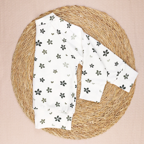 • Kleuren & prints: ecru met donker en lichtgroene madeliefjes