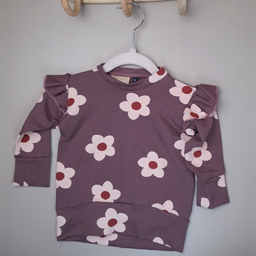 Handgemaakt in eigen atelier van zachte, duurzame stoffen. Dit babyshirtje sweater met ruffles op de schouders zit heerlijk comfortabel, groeit mee en is makkelijk aan en uit te trekken. Perfect te combineren met ons babybroekje legging voor een compleet lief setje.
