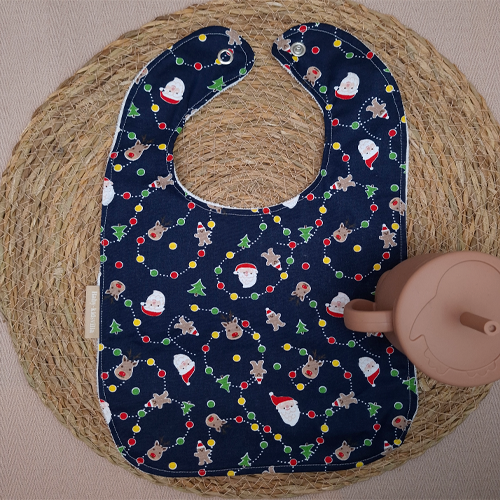 Handgemaakt en duurzaam, deze babyslab is ideaal voor de eerste hapjes tijdens kerst en houdt de kleding van je kleintje lekker droog.