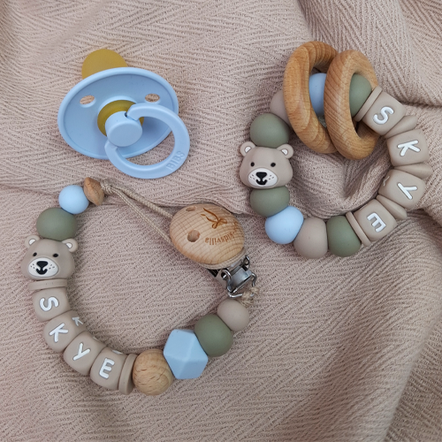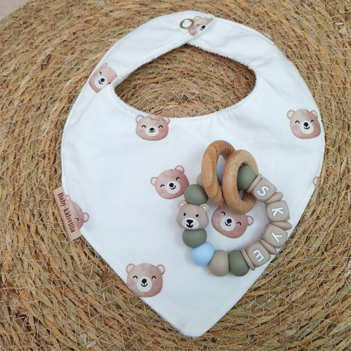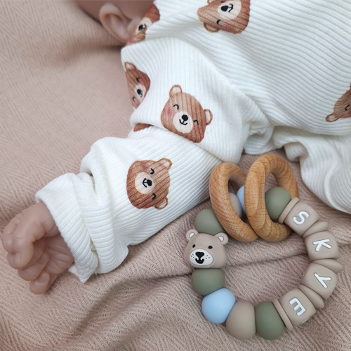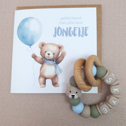 Bijtring met naam jongen beer beige