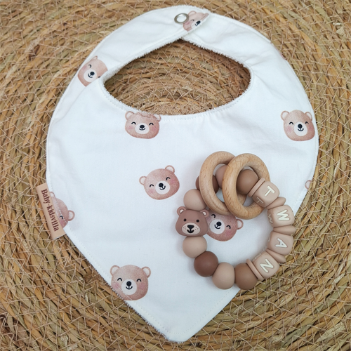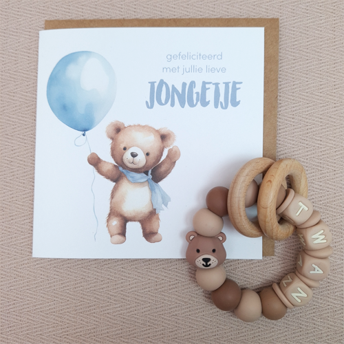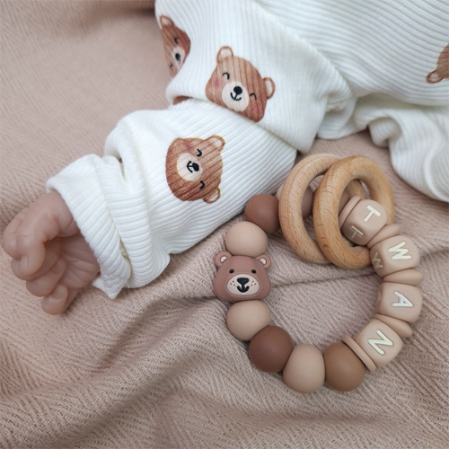 Bijtring met naam jongen beer hazelnoot
