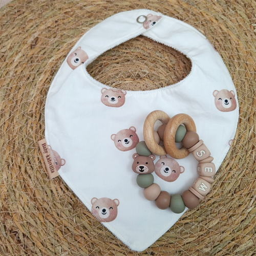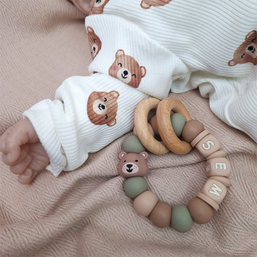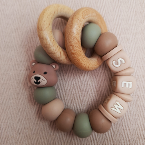 Bijtring met naam jongen beer salie
