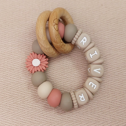 De bijtring met naam daisy rosewood, is een perfect kraamcadeau. Met de persoonlijke touch de naam van de baby op de bijtring maakt het tot een uniek geheel. Dit unieke handgemaakte bijtring wordt speciaal door mij ontworpen en samengesteld in mijn eigen atelier.