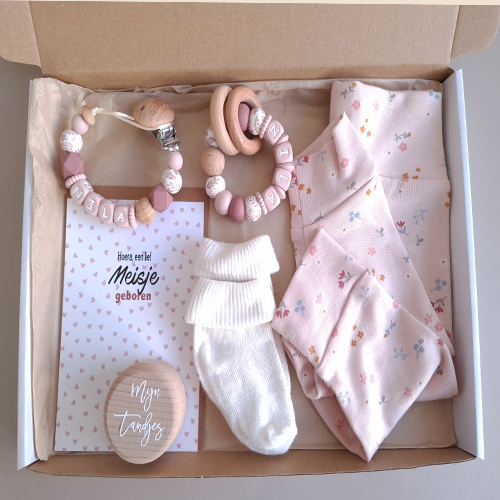 Ik maak het jou graag makkelijk. In de webshop stel je zonder gedoe een uniek kraamcadeau samen dat direct naar jou of de kersverse ouders wordt verzonden. Van speenkoord tot bijtring en van zachte kleding tot complete cadeausets: jij kiest, ik maak het persoonlijk en met veel liefde voor je af. Zo kom je altijd met iets bijzonders voor de dag.
