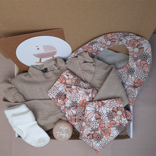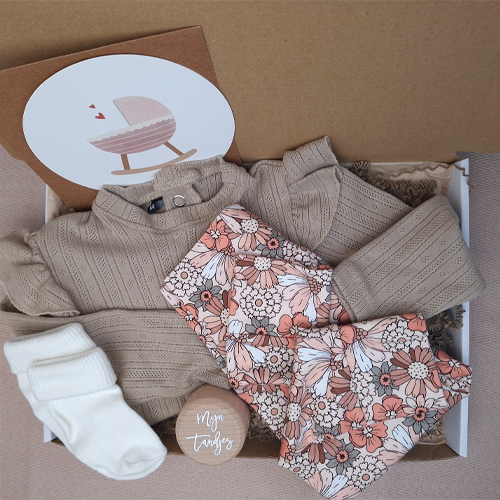 Zoek je een lief en praktisch kraamcadeau voor een meisje dat gewoon door de brievenbus past?  Dit brievenbus kraamcadeau met een zacht longsleeve shirtje en bijpassende legging in maat 50-92 is een warme verrassing voor kersverse ouders en hun baby. Perfect als je niet langs kunt gaan, maar toch iets bijzonders wilt geven.
