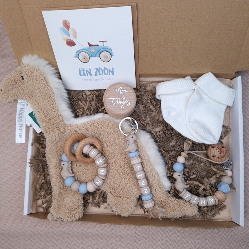 Of je nu zoekt naar een brievenbus kraamcadeau voor een jongen, een persoonlijk babycadeau of een origineel Happy Horse cadeau: met deze set zit je altijd goed.