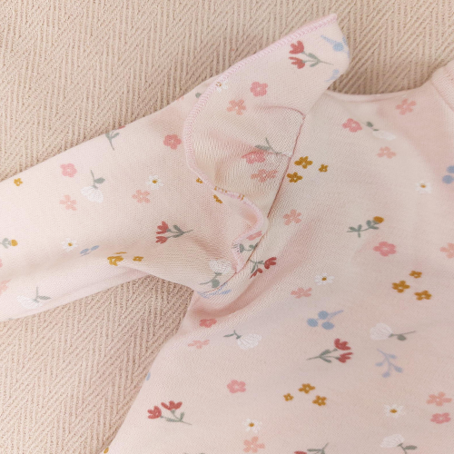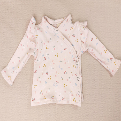 Dit handgemaakte overslag shirtje kleine bloemen roze verkrijgbaar in maat 50- 56 en speciaal gemaakt voor de allerkleinsten. Babyshirtje met ruffle mouwen heeft een overslag met drukknoopjes, waardoor het niet over het hoofdje hoeft. Daardoor zit het niet alleen heerlijk, maar is het ook makkelijk aan en uit te trekken ideaal voor de eerste weken. Elk babyshirtje ontwerp en maak ik zelf in mijn atelier met veel zorg en aandacht voor comfort en kwaliteit. Combineer de sweater met raglan mouwen met één van onze handgemaakte babybroekjes en je hebt meteen een superleuk setje babykleding voor jouw kleintje.