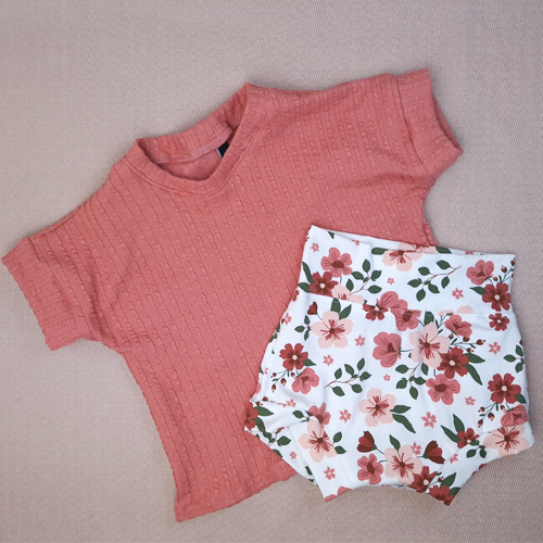 Handgemaakt in eigen atelier van zachte, duurzame stoffen. Dit babyshirtje boxy tee rib ruffle koraal zit heerlijk comfortabel, groeit mee en is makkelijk aan en uit te trekken. Perfect te combineren met het belly bummie bloemen koraal voor een compleet schattig setje.