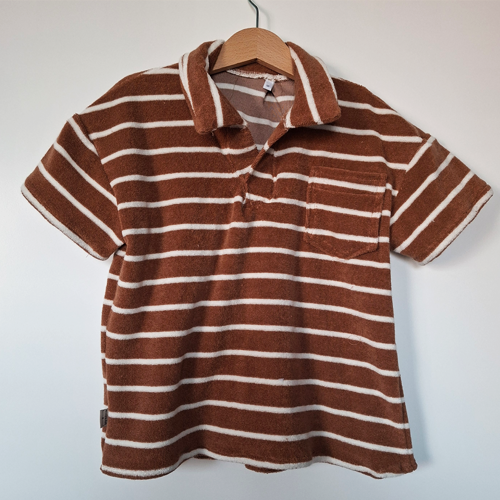 Handgemaakt in eigen atelier van zachte, duurzame stoffen. Dit shirt polo streep bruin ecru verkrijgbaar in maat 80 t/m 110 zit heerlijk comfortabel en is makkelijk aan en uit te trekken. Perfect te combineren met ons short met streep bruin ecru voor een compleet vrolijk setje.