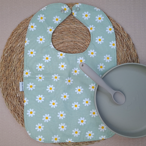 Op zoek naar een unieke slab XL daisy mint voor schattige meisjes? Deze handige slab houdt de kleren van je kindje droog en schoon tijdens het eten en voorkomt doorlekken. Je maakt hem eenvoudig vast met de drukknoopjes aan de achterkant. De slab is handgemaakt van 100% biologisch poplin katoen superzacht voor de huid van je baby en heerlijk goed absorberend. Dankzij de extra absorberende tussenlaag blijft de kleding van je kleintje lekker droog, zelfs bij de grootste knoeipartijtjes. Geschikt voor de wat grotere baby’s vanaf ongeveer 1 jaar. Elke slab wordt door mij met liefde ontworpen en met de hand gemaakt in mijn eigen atelier. Zo weet je zeker dat je iets bijzonders in handen hebt een duurzame en unieke must-have voor de dagelijkse eetmomenten van je baby.