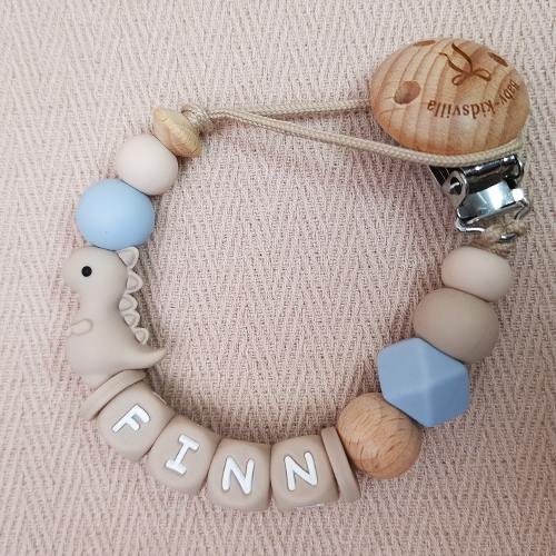 Speenkoord met naam jongen dino beige