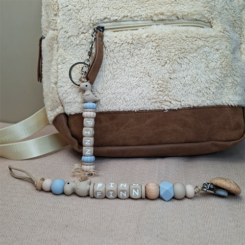 • Sleutelhanger met naam: leuk voor aan de luiertas of als klein cadeau