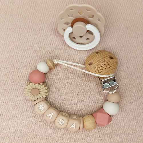 Het speenkoord met naam daisy havermout, is een perfect kraamcadeau. Door de naam van de baby toe te voegen, maak je er echt iets unieks van. Deze handgemaakte speenkoord ontwerp en stel ik met liefde zelf samen in mijn eigen atelier.