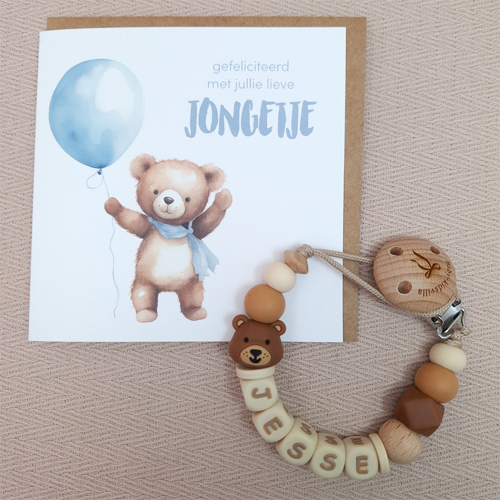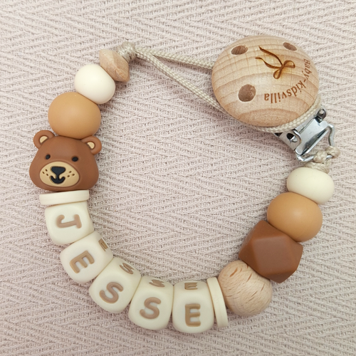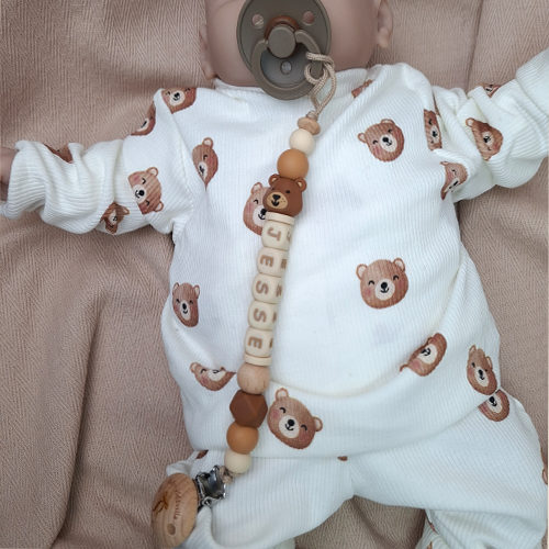 Speenkoord met naam jongen beer amandel