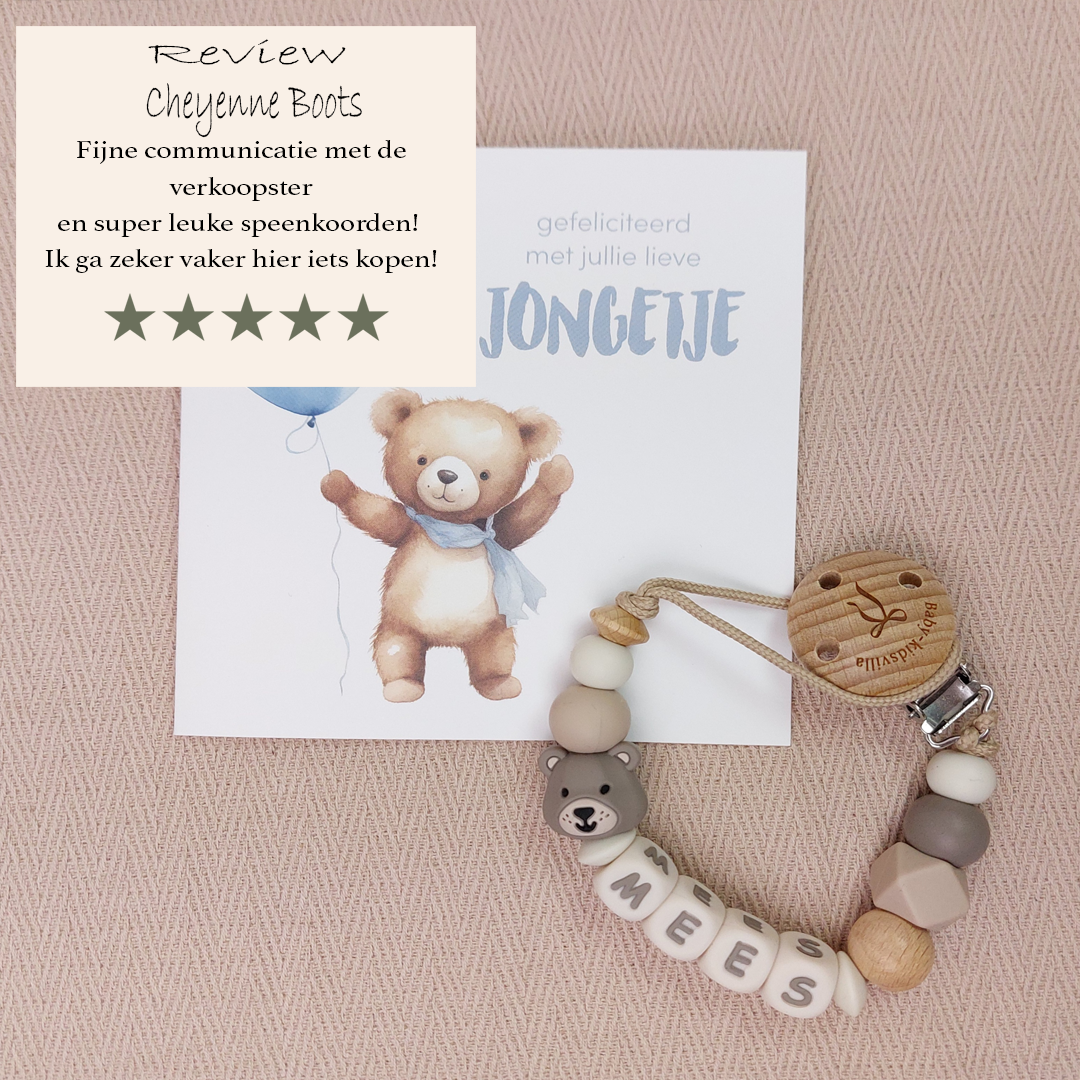 1 beoordeling voor Speenkoord met naam jongen beer taupe