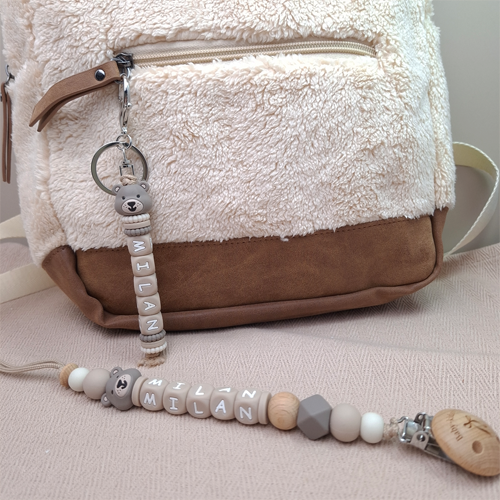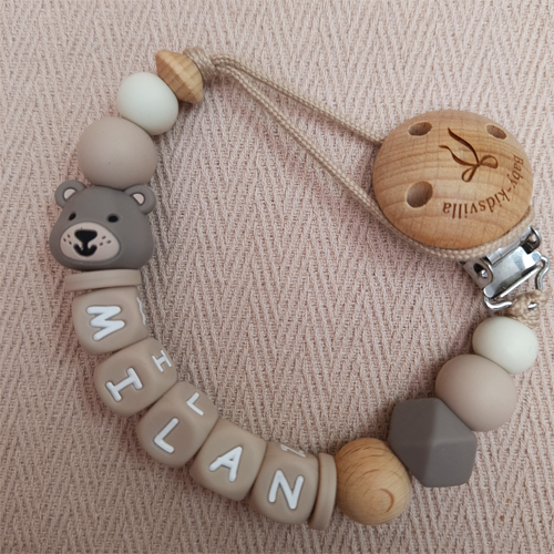 Speenkoord met naam jongen beer taupe