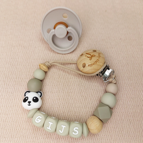 Speenkoord met naam jongen pandabeer salie