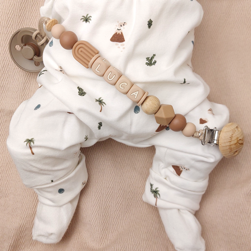 Geef een uniek en duurzaam gepersonaliseerd speenkoord cadeau. Voeg de naam van de baby op het speenkoord toe en je hebt een perfect persoonlijk kraamcadeau voor de baby en ouders die gaan voor gemak.