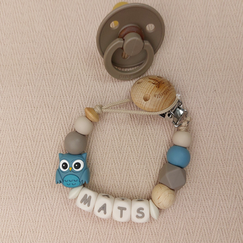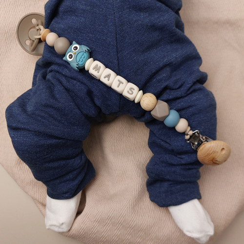 Het speenkoord met naam uil artic blue, is een perfect kraamcadeau. Door de naam van de baby toe te voegen, maak je er echt iets unieks van. Deze handgemaakte speenkoord ontwerp en stel ik met liefde zelf samen in mijn eigen atelier.