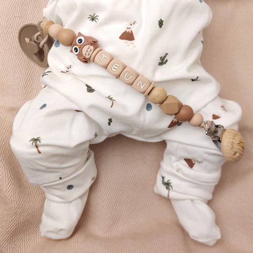Geef een uniek en duurzaam gepersonaliseerd speenkoord cadeau. Voeg de naam van de baby op het speenkoord toe en je hebt een perfect persoonlijk kraamcadeau voor de baby en ouders die gaan voor gemak.