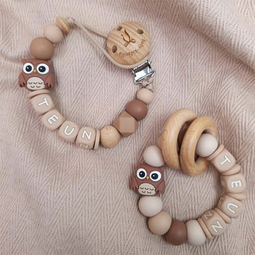 - Bijtring met naam: ideaal als de baby last krijgt van doorkomende tandjes