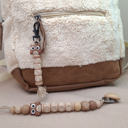 - Sleutelhanger met naam: leuk voor aan de luiertas of als klein cadeau voor mama