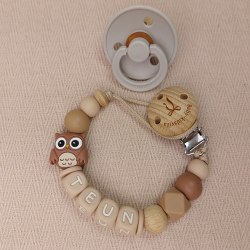 Speenkoord met naam jongen uil melkchocolade