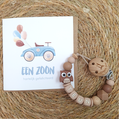 Tip: Combineer je bestelling direct bij de personalisatie van het speenkoord, zodat alles perfect bij elkaar past. Zo stel je eenvoudig een uniek en persoonlijk kraamcadeau samen dat klaar is om te geven.