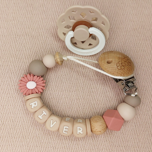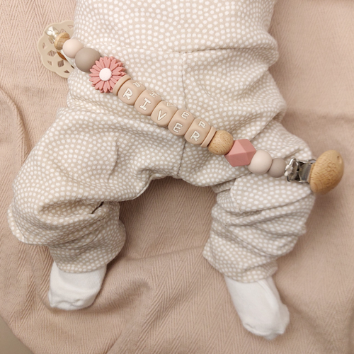 Het speenkoord met naam daisy rosewood, is een perfect geboortecadeau. Door de naam van de baby toe te voegen, maak je er echt iets unieks van. Deze handgemaakte speenkoord ontwerp en stel ik met liefde zelf samen in mijn eigen atelier.