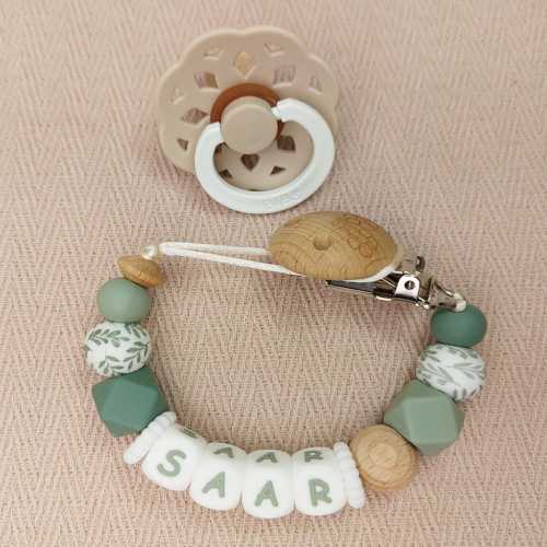 Tip: Heeft de naam speciale tekens zoals É, Ë, Ï of È? Dan kun je kiezen voor een ander speenkoord met de letterkralen in de kleur crème of beige óf de kleur van deze letterkralen aanpassen. Wil je hier gebruik van maken? Neem dan even contact met ons op via het onderstaande contactformulier, dan kijken we samen naar de beste optie!