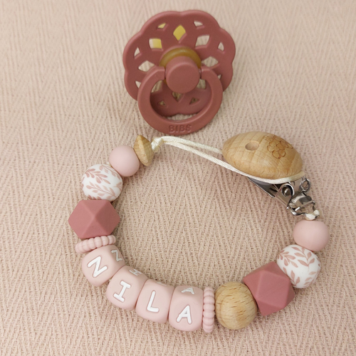 Speenkoord met naam meisje flower oudroze