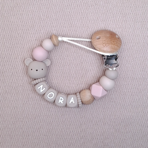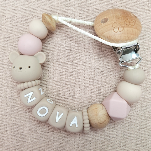 Speenkoord met naam meisje muis beige