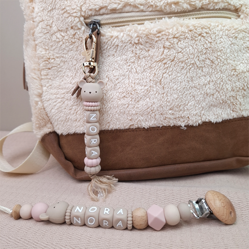 - Sleutelhanger met naam: leuk voor aan de luiertas of als klein cadeau